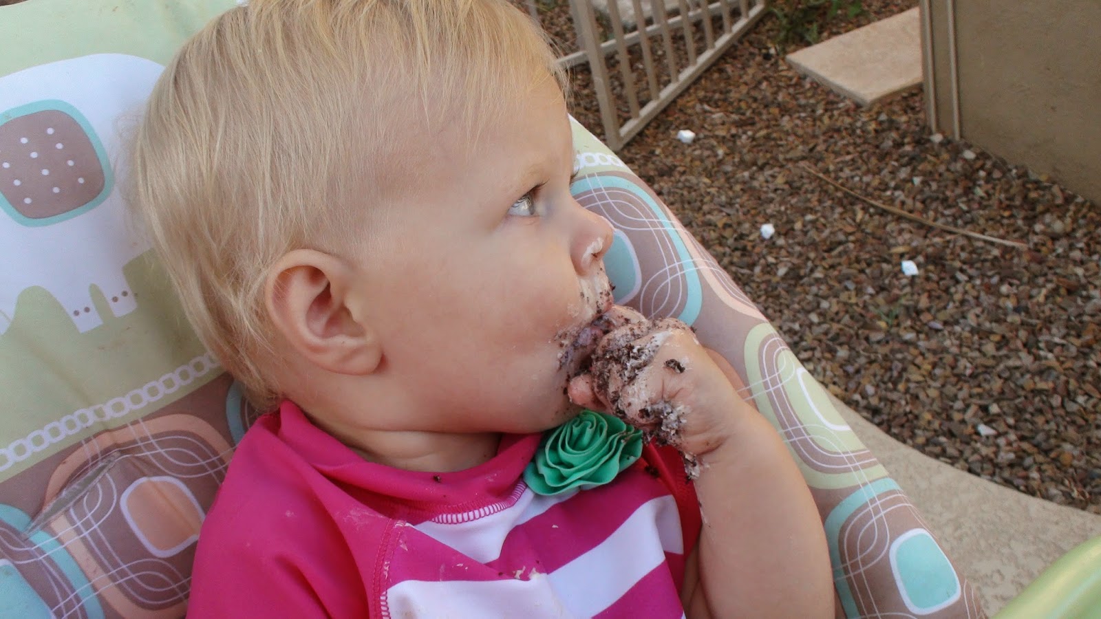 It took Macie a few minutes to warm up to the cake. But once she felt comfortable with the texture of it she started stuffing her face.